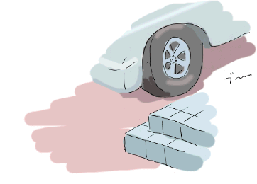 南部屋内コートの横の階段のところに当たってタイヤが破けちゃった。がっかり。でもここみんなぶつけてるんだろうなぁ。
