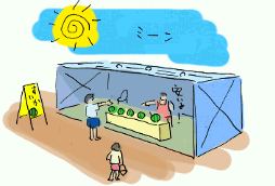 そろそろ時期がすぎたせいか夏のあいだのスイカ直売所がたたんでしまった。夏が終わったみたいでちょっとさみしい・・