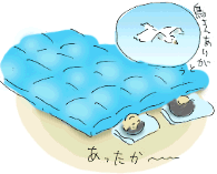 リリーにとられたふとんカバーのかわりを買いに行ったら羽毛布団が目に入って衝動買い!でもあったかくて軽くてビックリ。TAQがずっと前にいいよって言ってたけどホントだ。