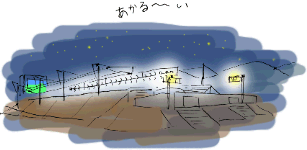 やまびこドームの近くのサッカー場に照明がついていた。でっかいパノラマビジョンもあって本格的だ。