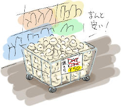 閉店15分前に西源に行ったら、鏡餅がめちゃ安になっていた。最後はなんと50円!