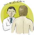一美が婦人科検診に行った。乳がん検査でおいしゃさんに“いいおっぱいだねぇ”とほめられてごきげん。