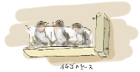 物置の天井に作ってあったつばめの巣が落ちてしまっていた。コンクリートの土間にひなが3羽じっと集まってふるえていた。じいちゃんがプラスチックのケースでかわりの巣を作ってひなを入れておいたら、また親つばめがエサを運び始めた。ほっ、よかった・・。