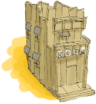 のスパゲティは大好き。今日はぜったい違うのにしようって決めてるのにまたシーフードトマトにしてしまう。しかし窓際にあった模型の木の家がどーも気になるなぁ・・。
