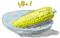 いただいたとうもろこしを食べたらおいしかったぁ〜。ゆでたては特に最高!