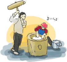 太久ん家と合同の恒例餅つき大会。去年は大澤さんが臼を壊したけど、今年はかずやが杵を壊した・・。でもいいお餅がつけたよ。