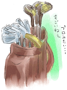 まだビニルがかかっているレディスのゴルフクラブをもらった。そのころお店で一番いいのだったんだって。一美はやる気まんまんだけどパターってどれ?って聞かれた。
