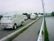 あちこちにシールぺたぺた貼ってあって、けっこう車もきたなかった。スパイクタイヤのような音がしたのでよく見たらアース線のようなものが地面をこすっていた。帰ってテレビを見たら自分が映ってびっくり。