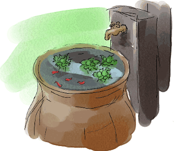 庭のカメに金魚を入れた。ちょっと夏らしい。