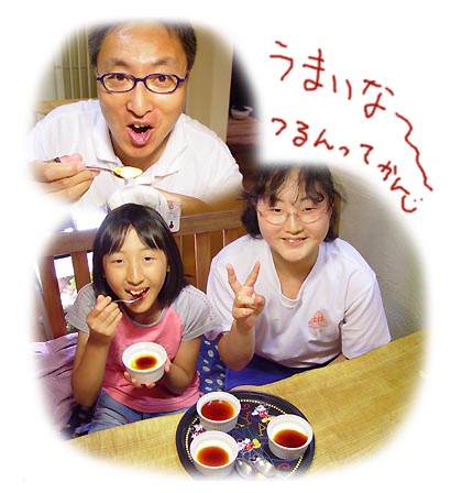 夕飯のあとアイが急に思い立ってプリンを作ってくれた。柔らかくて