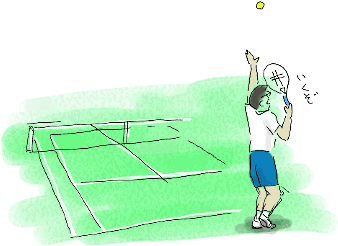 スクールの朝の練習で突然フォアに切れていくスライスサーブをつかんだ。