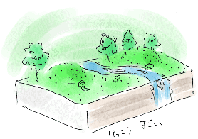アカネが夏休みの工作でジオラマを作った。河原は僕のテニスシューズにたまっていた砂だ。