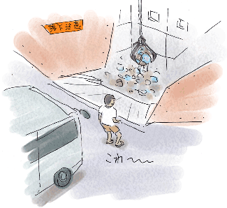 タキューのお家のふとんなんかをラーラに持っていった。ゴミを投げる場所のあの高さは、かなりビビる。