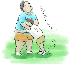 本当のおすもうさんと相撲をとった!見た目と違って体が岩のように固い。“どこからでもいいですよ”と言われてぶつかったけどうんともすんとも動かない・・。尾車部屋の錦風。2時半ころ試合らしい。こんどテレビで応援しよ。