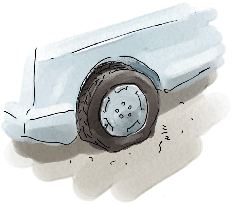 年末に替えたスタッドレスの空気が抜けていた。見てもらったら、まち針みたいなすごく細い針がささっていた。2週間くらいかかって抜けたんだ・・。
