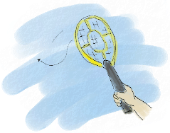 一美が買ってきた電撃のハエ取り機はテニスプレーヤーなら燃えるカタチ!ついどこまでも追っかけてしまう。