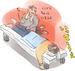 一番下の引き出しを引いたらまたギックリ腰!悲しー。中田社長が“一発で治る!”と教えてくれた療術院に行った。痛くて手に汗ビッショリ。