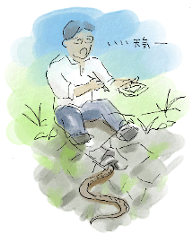 すごくいいお天気で土手でお弁当を食べたら足下に