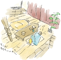 あかねは風邪で熱がでて居間に寝てから治ってもずっと居間で寝ている。あいまで一緒に寝てしまっている。涼しくて寝られるらしい。(酔った人もよく寝ていく)