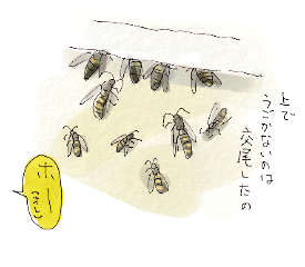 おいさんが地蜂の飼っているところを見せてくれた。すごいたくさんの新女王が出てきているころだ。たくさんふやして自然に帰してね。