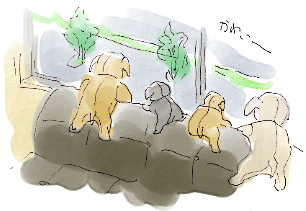 美味しいスパゲティが食べたくてサンタカフェに行った。窓の外を見ているわんちゃんたちが可愛かった。