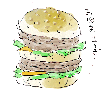 前に行ったとき売り切れていたメガマック。今度は買えたけど、食べても食べてもお肉だらけ・・。若者はうれしいんだろうけど。