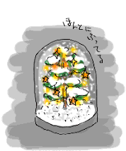 玄関にクリスマスツリーが飾ってあった。ほんとに粉雪が降ってるのでビックリ。きれいだ。